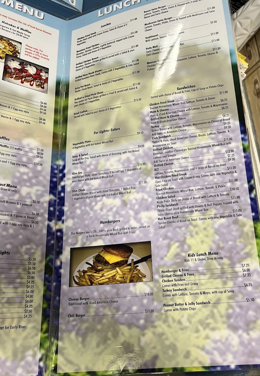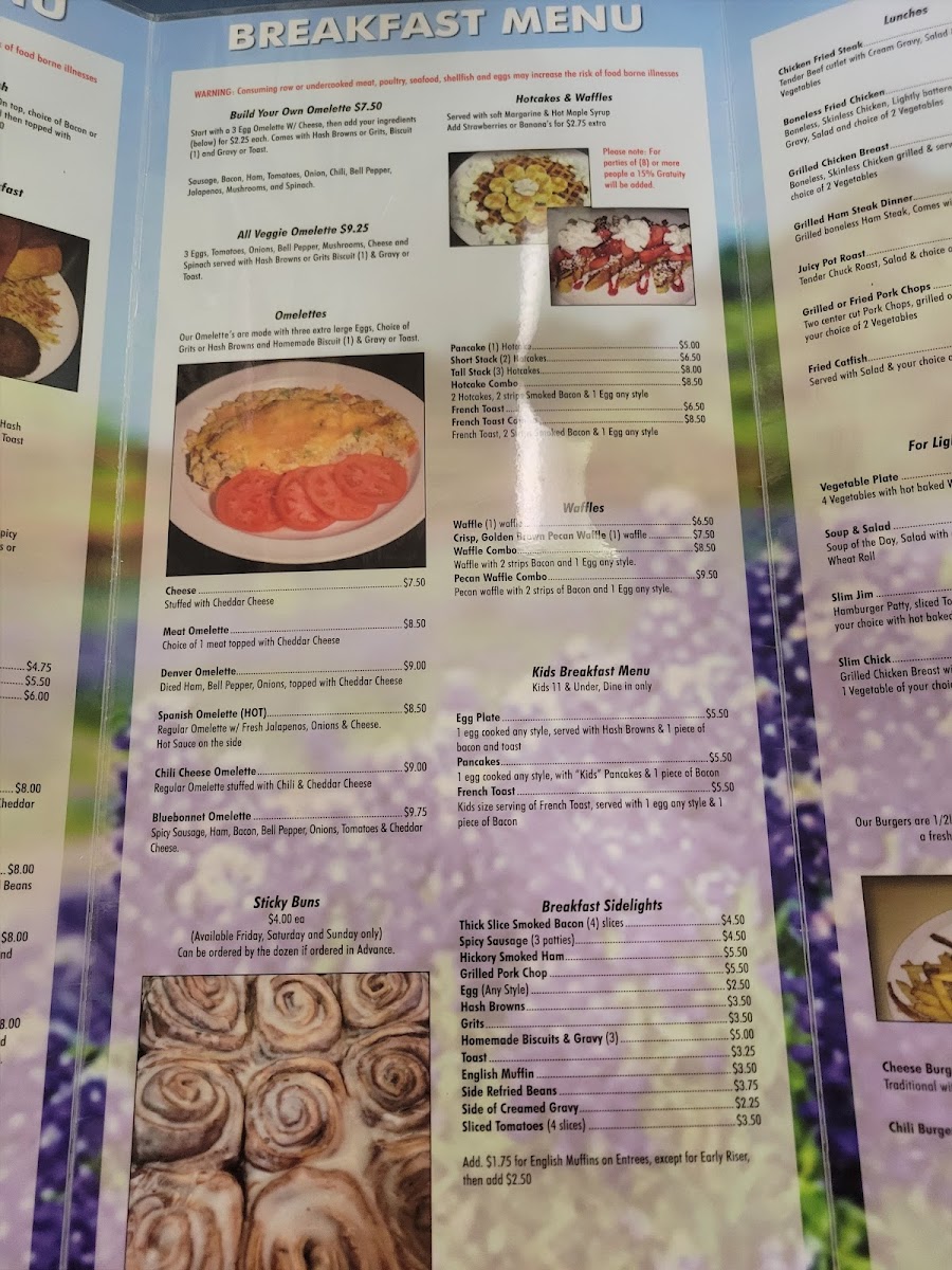 Welcome to Bluebonnet Cafe, a charming eatery located at 2223-A Haltom Rd, Haltom City, TX. This family-owned gem has been delighting patrons for over 30 years with its commitment to scratch-made dishes. The menu presents a variety of options that cater to every palate, from juicy hamburgers like the Chili Burger and Cheese Burger to an array of flavorful omelettes, including the Bluebonnet Omelette and Spanish Omelette.